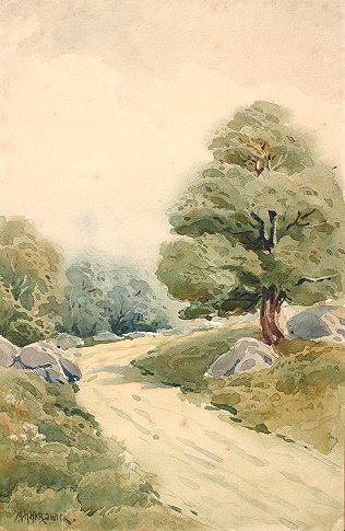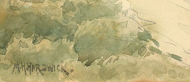 HARDWICK, Melbourne Havelock, (1857-1916): Country Landscape, W/C, 13 3/4'' x 9'', signed LL, gold frame with wear, 14 1/2'' x 9 1/2''.