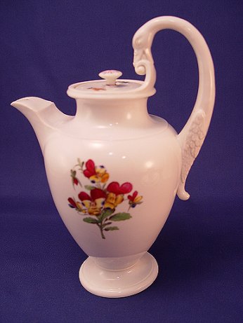 MEISSEN SWAN HANDLE TEAPOT: Hand painted, handle in the form of a swan, blue cross sword marks. 9 1/2''h.