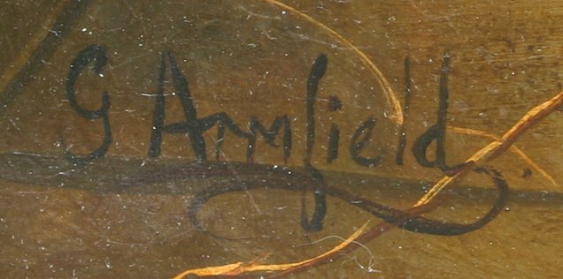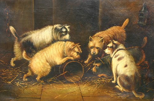 AFTER ARMFIELD, George, (British, Born Circa 1808-1893): 5 Terriers with rat in a barrel, O/C, 20'' x 30'', signed lower left, encased in contemporary frame, 21 1/2'' x 31 1/2''.