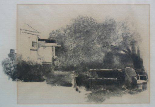 INTRIGUING PENCIL/WASH COMPOSITION, CIRCA 1930: Unsigned, 12'' x 16'' sight size, painted silver frame with wear, 23'' x 27''.