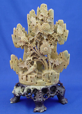 CHINESE CARVED SOAPSTONE STATUARY: Bird in a tree, 12''h.