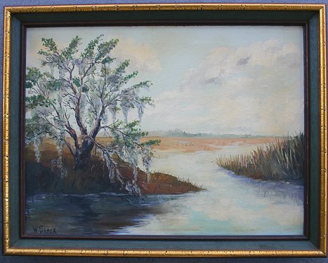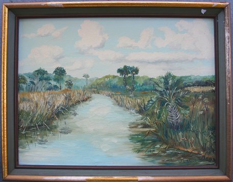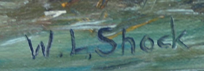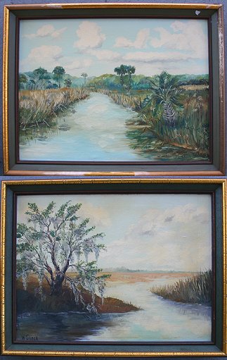 TWO O/C FLORIDA HIGHWAYMEN STYLE PAINTINGS SIGNED W. SHOCK: 20'' x 24'', wooden frame, 21'' x 25''.