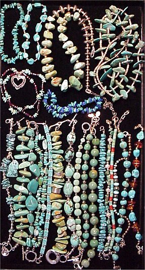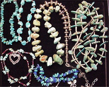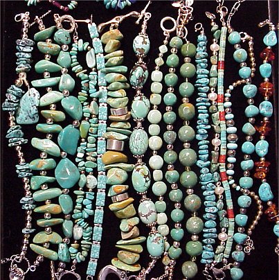 ESTATE LOT OF TURQUOISE BEAD JEWELRY: 22 pcs to include, 16 bracelets with sterling clasps, four stretch bracelets, 29'' necklace and an 18'' necklace with a 4'' extender. Sold as a lot.