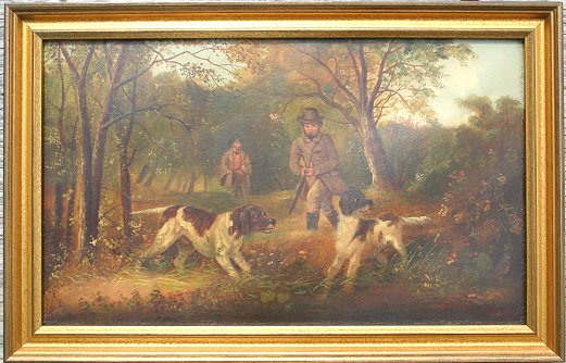 HUNT SCENE PAINTING SIGNED A.V. WILLIS: O/C, 12'' x 20 1/4'', frame size 14 1/2'' x 22 1/2''.