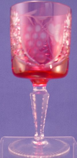 SET OF 10 CRANBERRY CUT TO CLEAR GOBLETS: Cut in a grape design, 6''h.