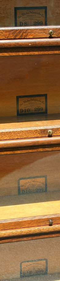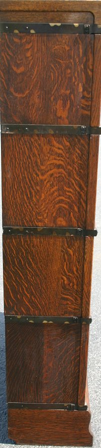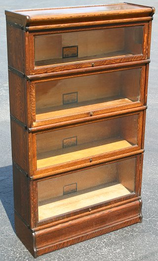 GLOBE WERNICKI QUARTER SAWN OAK BOOKCASE: 4 stack labeled D-8 1/2 299. 60''h., x 34'' x 11''.