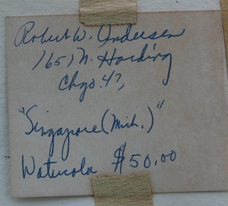 ANDERSEN, Robert W., (American, 1933-): ''Singapore, Mich.'', W/C, 9'' x 23'', signed LR, dated '57, worn original black frame, 16'' x 29'', label affixed verso.
