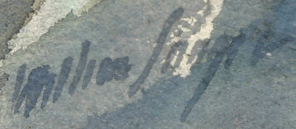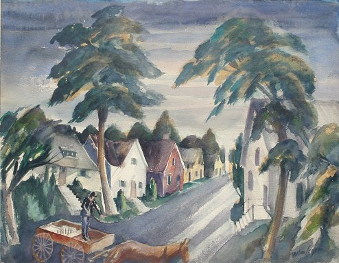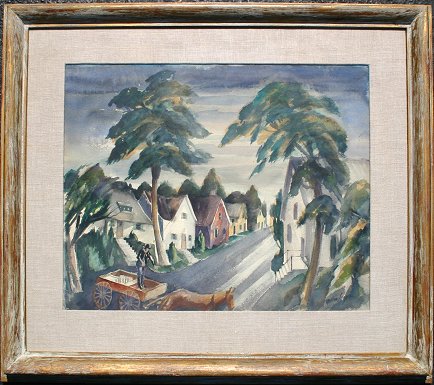 SANGER, William, (American, 1875-): Street Scene, W/C, sight size 18'' x 24'', signed LR, original white wash frame, 28'' x 34''. Sanger exhibited at the Salons of America, Art Institute of Chicago, Pennsylvania Academy of Fine Arts, Society of Independent Artists, and the Society of American Artists.