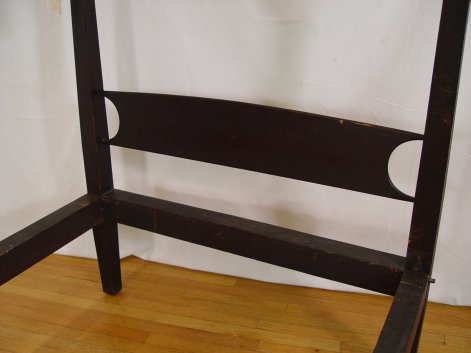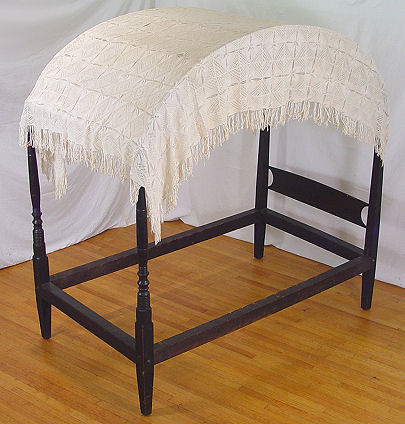 FEDERAL PERIOD FOUR POSTER BED WITH CANOPY TOP: Dark wood bed including rails and canopy frame. 82''h. with canopy in place, 79 1/2''l, 45 3/4''w.