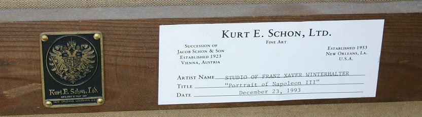 WINTERHALTER, Franz Xavier, Studio of, (German, 1806-1873): NAPOLEON III, O/C, 76 7/8'' x 51 1/2'', fine frame, 86 3/8'' x 61''. Provenance: Kurt E. Schon Ltd., New Orleans, LA.