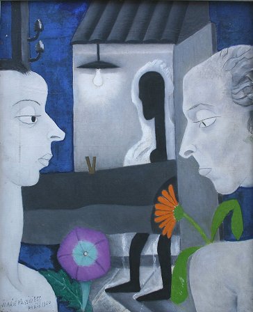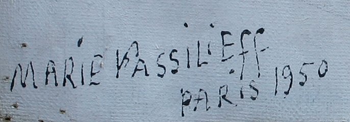 VASSILIEFF, Marie Ivanova, (Russian, 1884-1957): Interior Scene with Figures, O/C, 24'' x 20'', signed LL, dated 1950, newer frame, 28'' x 24''.
