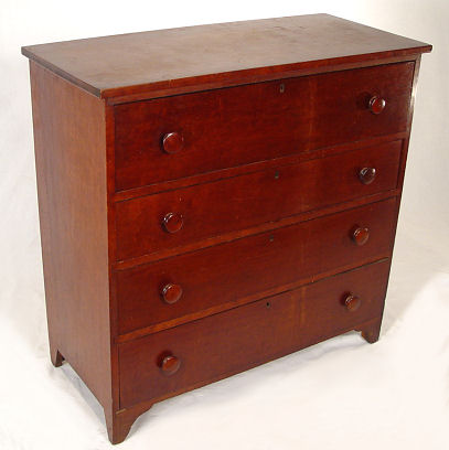19th C AMERICAN COUNTRY CHEST OF DRAWERS: Four drawer dresser, wood knobs, 37 1/2'' x 38 1/2'' x 17 1/2''.