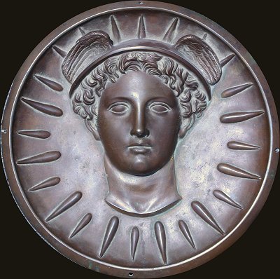 BRONZE PLAQUE OF MERCURY: probably turn of the century, no foundry mark or signature, approx. 13'' diameter.