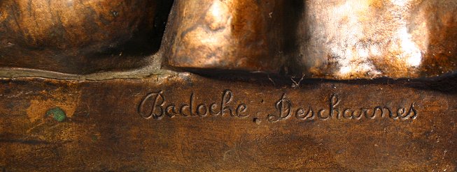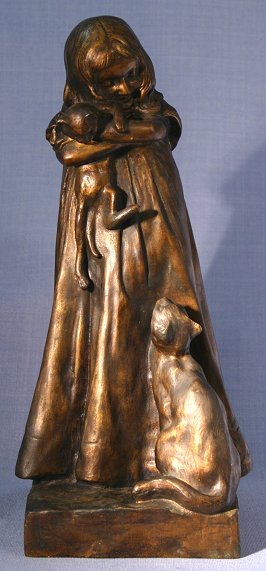BADOCHE, Edmond, (French, 19th C.): ''DESCHARMES'' Young Girl with Kitten and Cat, Bronze, Signed Badoche, 11 1/4'' h., incised signature with title, incised P.T. underneath. Est. $1200/1800**