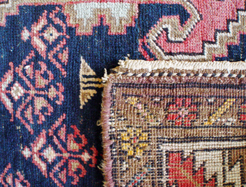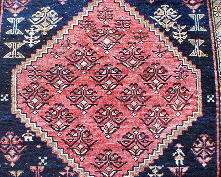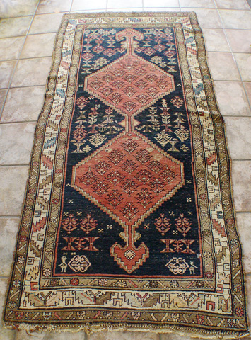 HAND KNOTTED WOOL CARPET: Graphic design, approx. 7'6'''' x 3'5''.