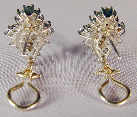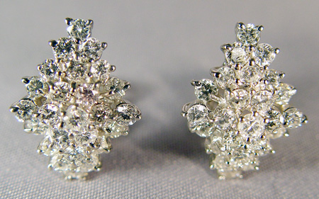ESTATE DIAMOND CLUSTER EARRINGS: Each Omega back post earring of 14k white gold is prong set with a cluster of 25 small diamonds, approx. 1/2ctw, 3/4''l., marked 14k, 6.3 grams.