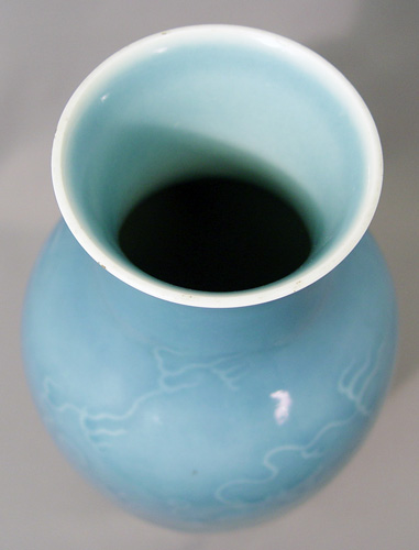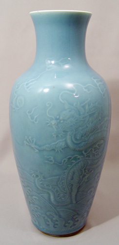 NICE 19TH C CHINESE MONOCHROMATIC BLUE DRAGON VASE: Spurious Qianlong mark, 13''h.