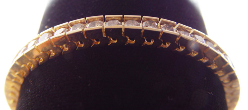 LADIES 2ctw DIAMOND 14K TENNIS BRACELET: 66 round brilliant cut diamonds each set in its own link of yellow gold, 7''l., 14 grams.
