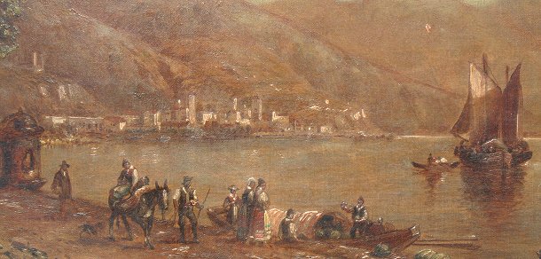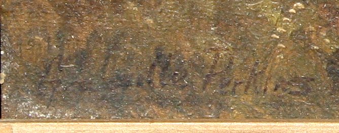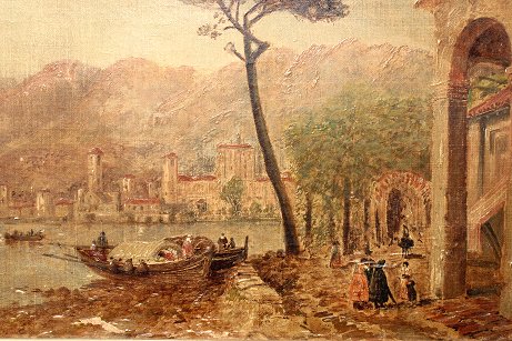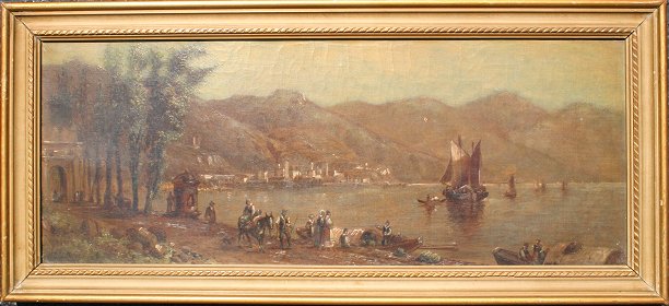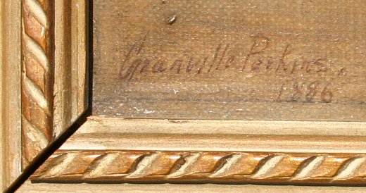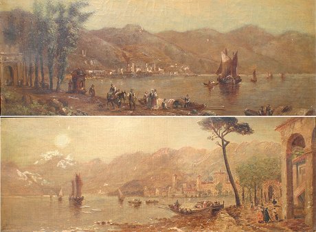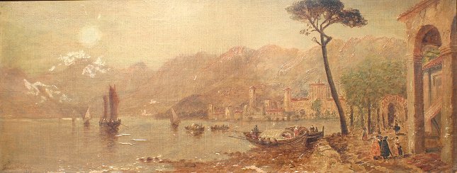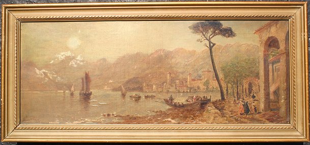 PERKINS, Granville, (1830-1895): 2 Views of Lake Como, Italy, O/C, 9'' x 23'', signed, one is dated 1886, older frames with wear, 11 3/4'' x 26''. One piece has paint flake in lower margin, some minor skinning, needs cleaning.