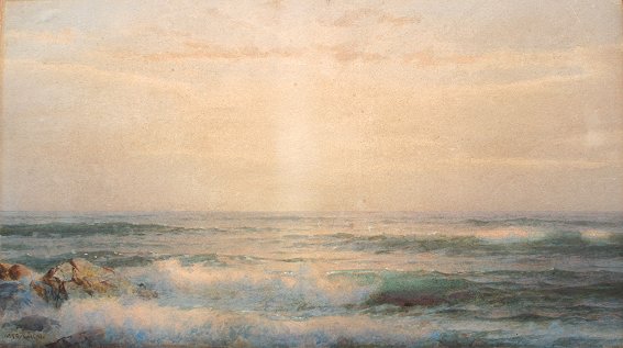 RICHARDS, William Trost, (American, 1833-1905): ''A Summer Morning'', W/C, 14 1/4'' x 24 3/4'', signed and dated '03, unframed, label verso. Staining/toning throughout, small abrasion. Est. $3000/5000**