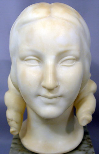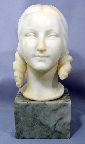 BESSI, Professor Giovanni, (Italian, 1857-1922): Bust of a Young Maiden, Alabaster, 8'' h., marble base has wear, 11 1/2'' total, signed on the base.
