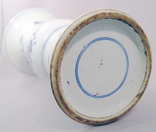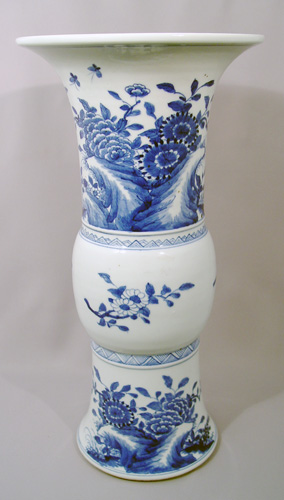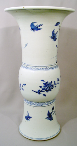 TALL 19TH C CHINESE BLUE AND WHITE VASE: Hand painted design, 15'' tall. Est. $600/800**