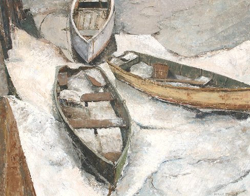 BROUDY, Miriam, (American, 1905-): ''Snowbound'', O/C, 22 1/2'' x 28'', Chatauqua Art Association label verso, barnwood frame, 30'' x 36''. Craquelure throughout, sporadic paint fleck.