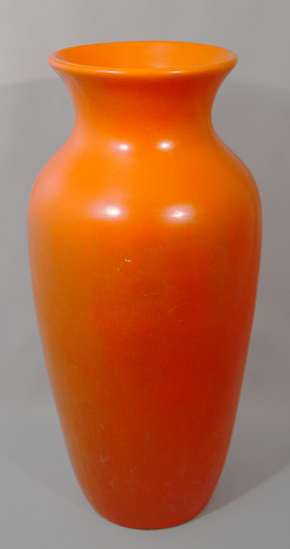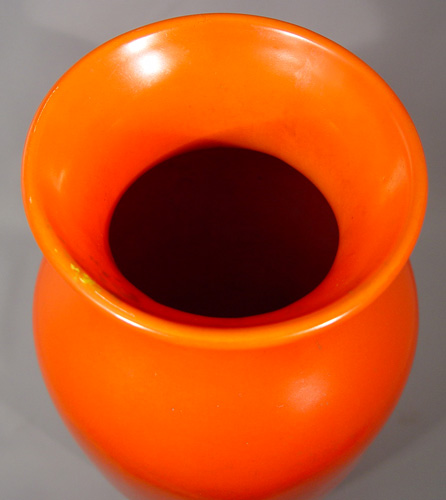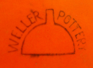 A TALL 1920'S WELLER POTTERY VASE IN THE CHENGTU GLAZE: With the full kiln ink stamp, 15 1/2''h. According to the Collectors Encyclopedia of Weller Pottery the temperature of the kiln was crucial, overfired the glaze burned out, underfired the glaze was not permanent- so never use an adhesive sticker.