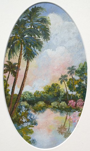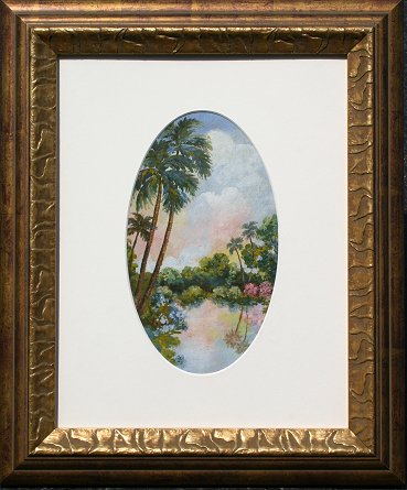 FLORIDA LAGOON PAINTING: O/B, 9'' X 5 1/2'', possible faint signature lower right, attractive contemporary gilt frame, 17 1/2'' x 14 1/2''. Est. $200/400**