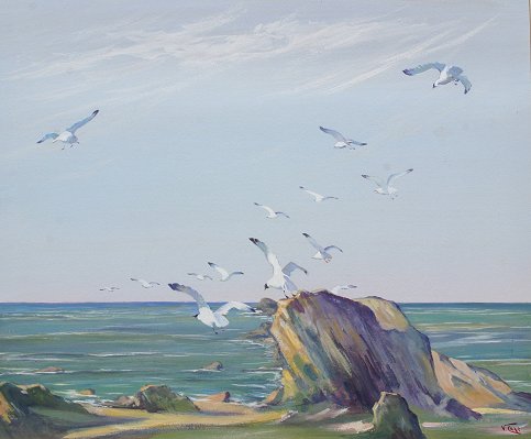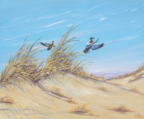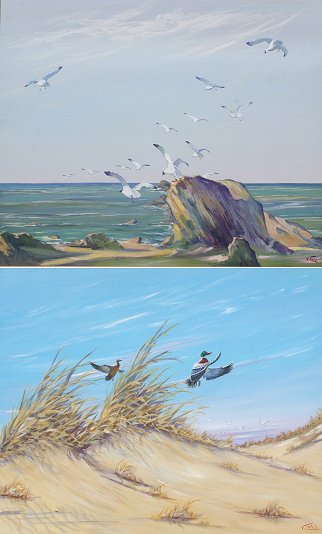 CALI, V., (American, 20th C.): 2 Florida Scenes, Gulls in Flight and Ducks on the Dunes, Gouaches, 20'' x 24'', signed, framed, 26'' x 30''.