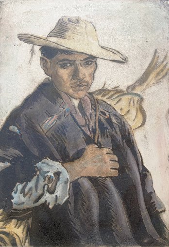 MARGULIES, Joseph, (American, 1896-1984): ''Mexican Wanderer'', Etching and Color Aquatint, 10 1/2'' x 7 3/4'' sight size, pencil signed, titled, edition of 50, in plastic. Very mild toning.