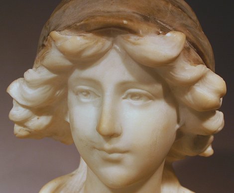 2 PC SCULPTURE LOT, SIGNED BUST OF MAIDEN, AND BUST OF A PRINCESS: Maiden measures 9 3/4'' h., signed, possibly Jahn Moritz, Princess measures 6 1/2'' h., both pieces have pedestels, measurements do not include them. Both pieces have minor wear and abrasions.