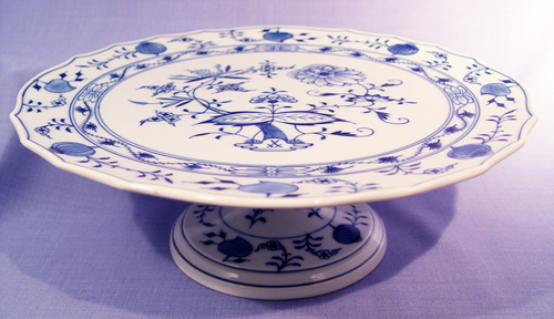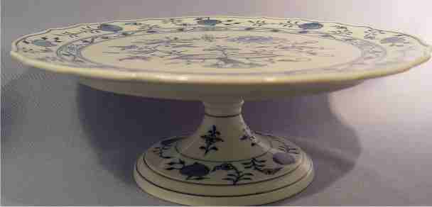 MEISSEN BLUE ONION CAKE STAND: 12'' dia., 4 1/2''h., base and plate marked under glaze.