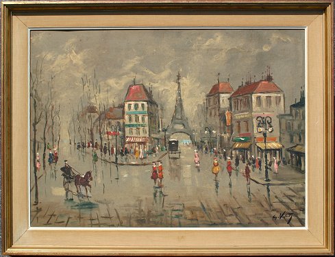 PARISIAN STREET SCENE SIGNED O/C: 20'' x 24'', signed illegibly lower right, framed 28'' x 32''.
