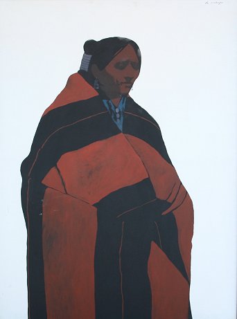 DeMAYO, Louis, (American, 20th C): Native American, O/C, 48'' x 36'', SUR. Several of his works are in The Harithas Collection at the Longview Museum of Fine Arts in Longview, Texas.