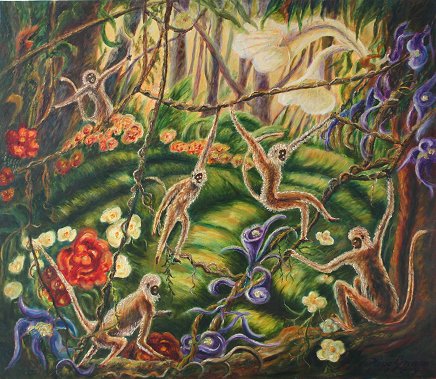 GNAM, Hugo, (American, 20th C.): ''Jungle Playground'', O/C, 30'' x 36'', SLR, dated 1986, signed and titled verso, unframed.