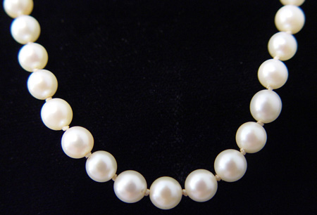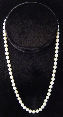 ESTATE 16'' STRAND of 5MM PEARLS: Creamy pearls double knotted with 14k white gold clasp.