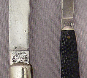 LOT OF 2 SCHRADE KNIVES: Schrade Push Button Knife, mottled handle, 3 3/8'' blade; Schrade Walden Pen Knife #770, master blade 2''l. Sold as a lot.