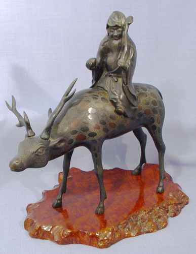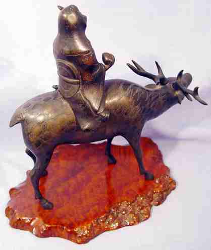 JAPANESE BRONZE FIGURAL CENSOR: Deer and rider, the rider lifts off, unsigned, 10''h. x 10''l.