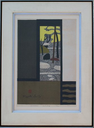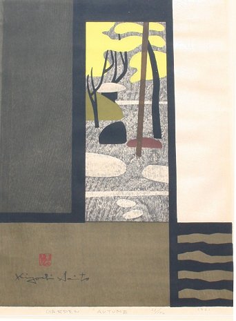 SAITO, Kiyoshi, (Japanese, 1907-1997): ''Garden Autume'', Woodblock, sight size 21 1/2''x 15 1/2'', pencil titled, numbered 23/150, and dated 1961 in margin, exceptional framing, 30'' x 20 1/2''.