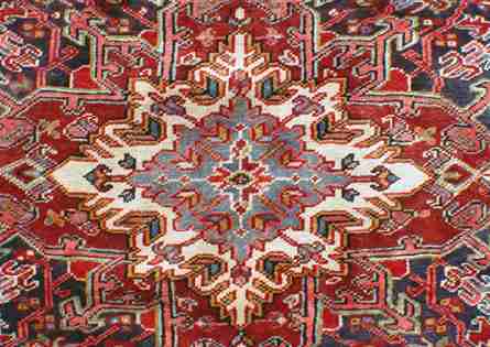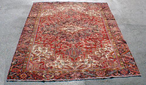 HAND WOVEN 100% WOOL ORIENTAL CARPET: Red ground with dark border, geometric pattern, 9'3'' x 12'11''.