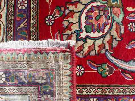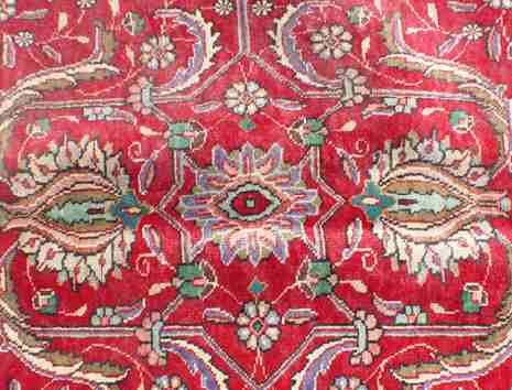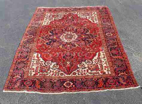 HAND WOVEN 100% WOOL ORIENTAL CARPET: Red ground with central medallion and wide border, 7'6'' x 11'1''.