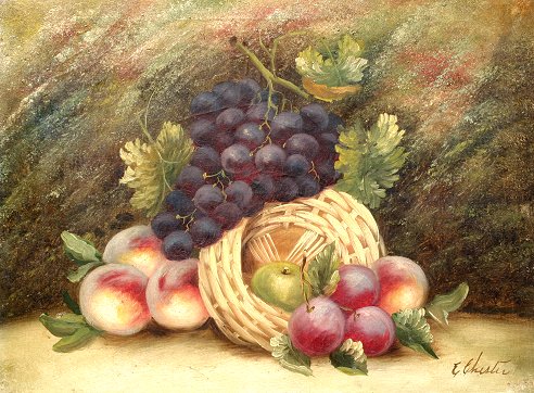 CHESTER, Evelyn, (British, 1875-1929): Still Life of Fruit, O/C, 20'' x 25'', signed, gilded frame with wear, 25'' x 30''. Some cracklure, fleck of paint in right margin, needs cleaning.