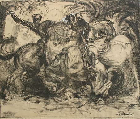 STRASSER, Benjamin, (Austrian, 1888-1955): The Lion Hunt, after Delacroix, lithograph, 20 1/2'' x 24 1/4'', pencil signed.