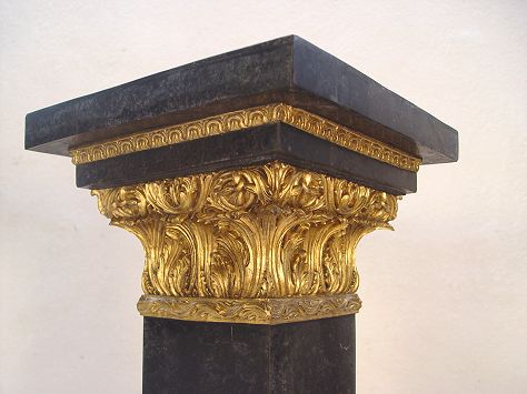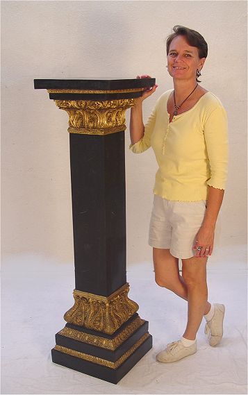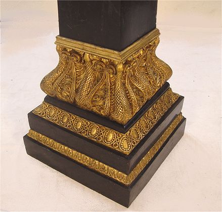 DARKEST GREEN MARBLE PEDESTAL: With applied gesso at the tiered base and under the platform. 55.25''h, the top is 15.5'' square.