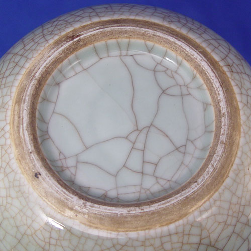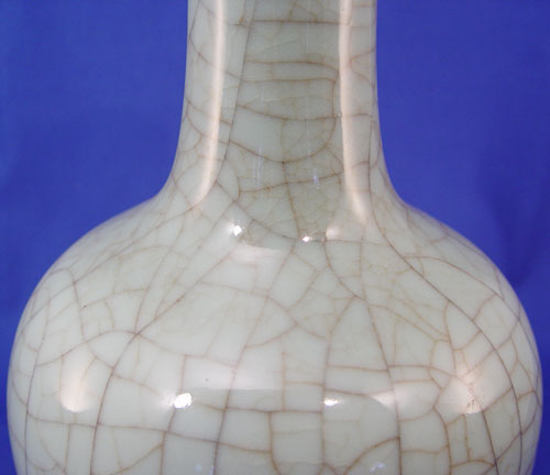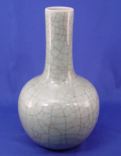 CHINESE CRACKLE GLAZE CELADON VASE: Bottleneck form, possibly Kangxi Period, unsigned, 13'' h.
