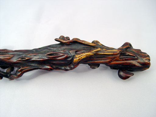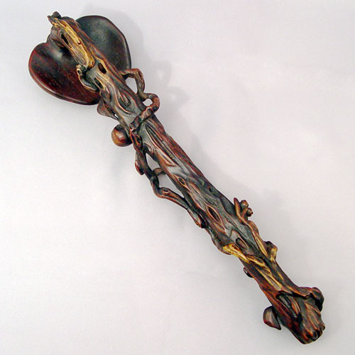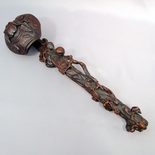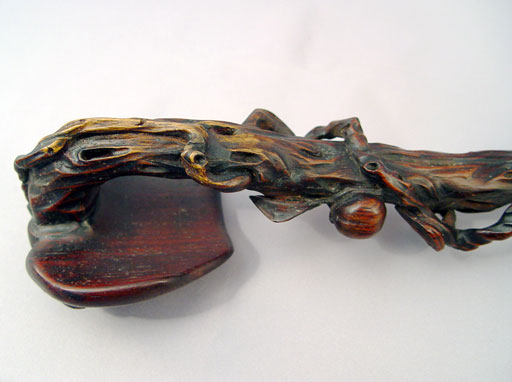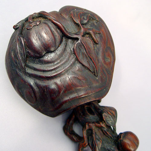 RARE CHINESE CARVED HARDWOOD RUYI SCEPTER: 18th - 19th Century, peach tree motif, 14'' l. Est. $1800/2200**