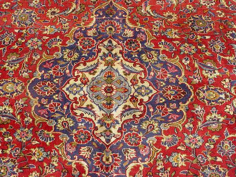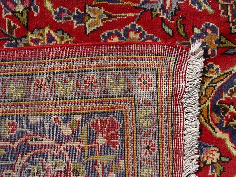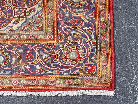 HAND TIED PERSIAN CARPET: Approx 8' x 11', red ground.