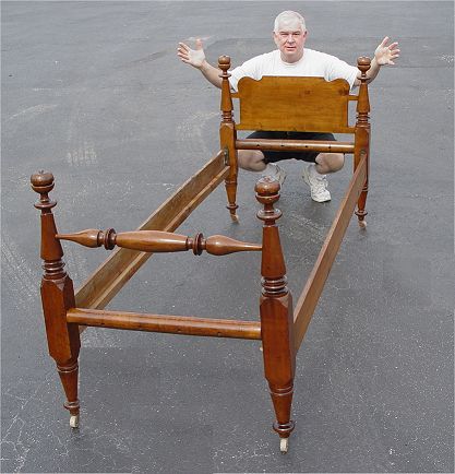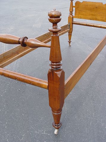 19th C CHERRY ROPE BED: 37''h. posts at the head and foot boards. Side rails adapted to hold a 30.5'' mattress.