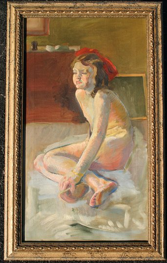 UNSIGNED AMERICAN IMPRESSIONIST NUDE OF A CHILD: O/C, 32'' x 18'', framed, 36'' x 21''.